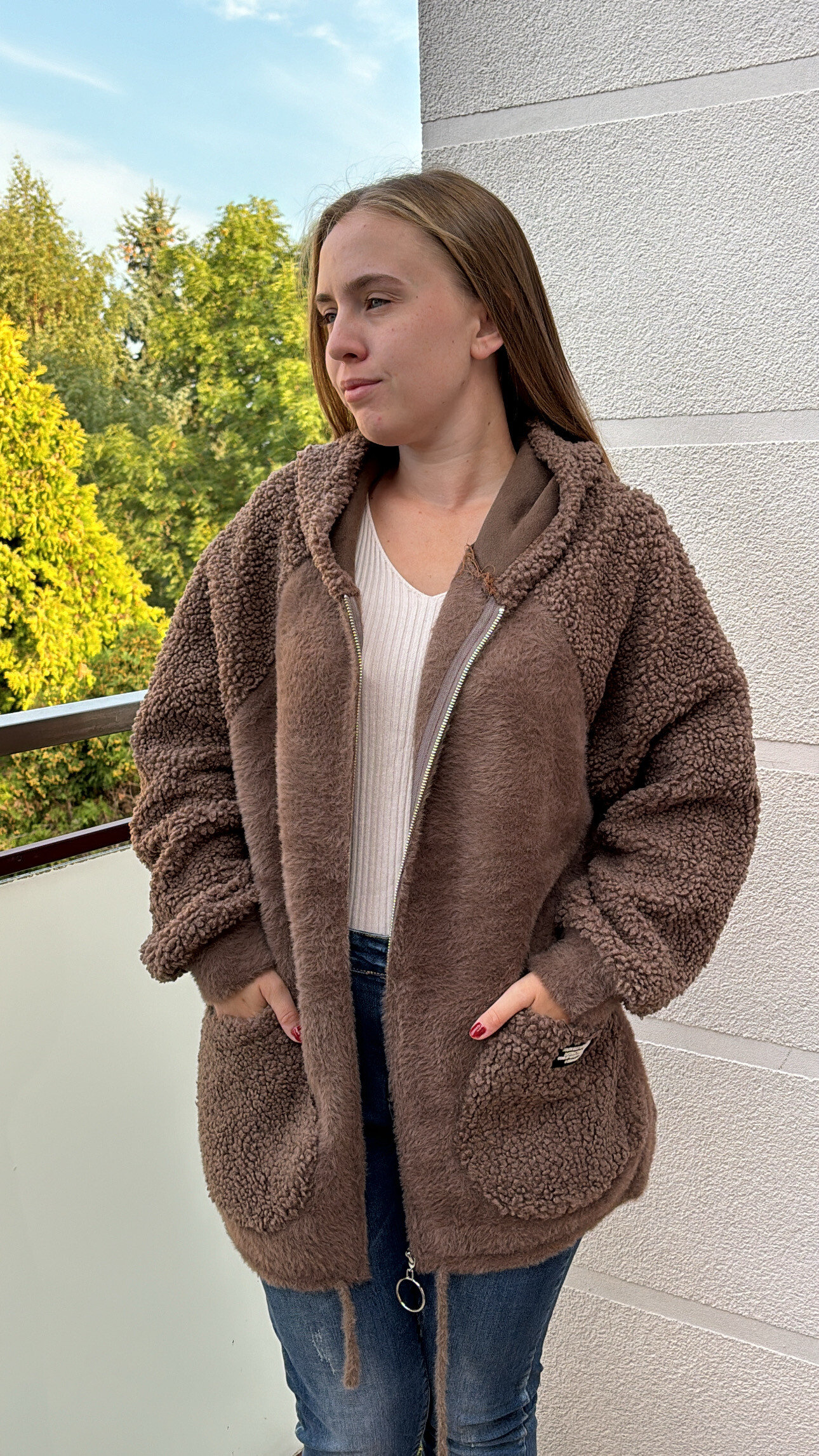 Duży głęboki kaptur i dwie pojemne kieszenie.