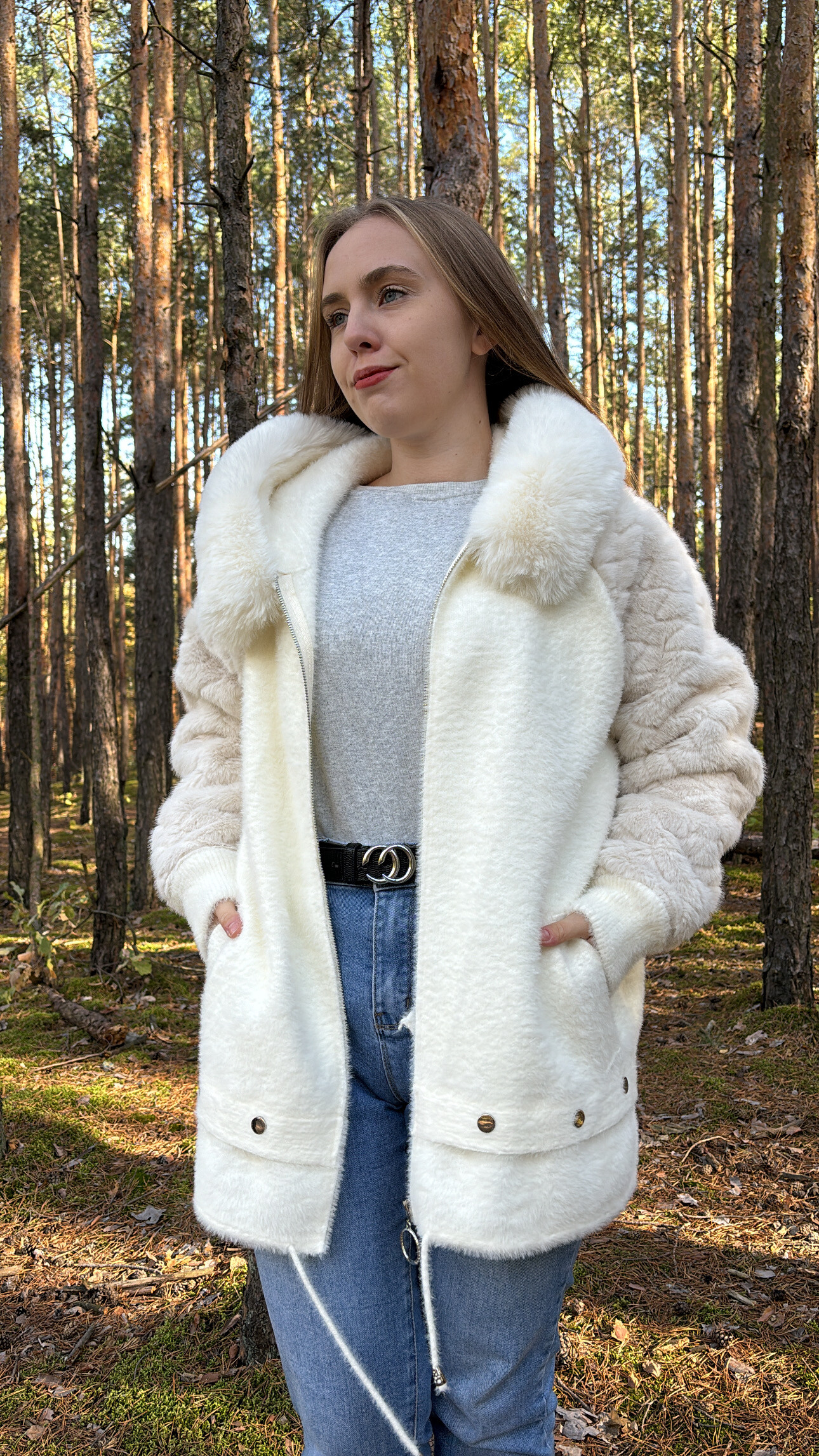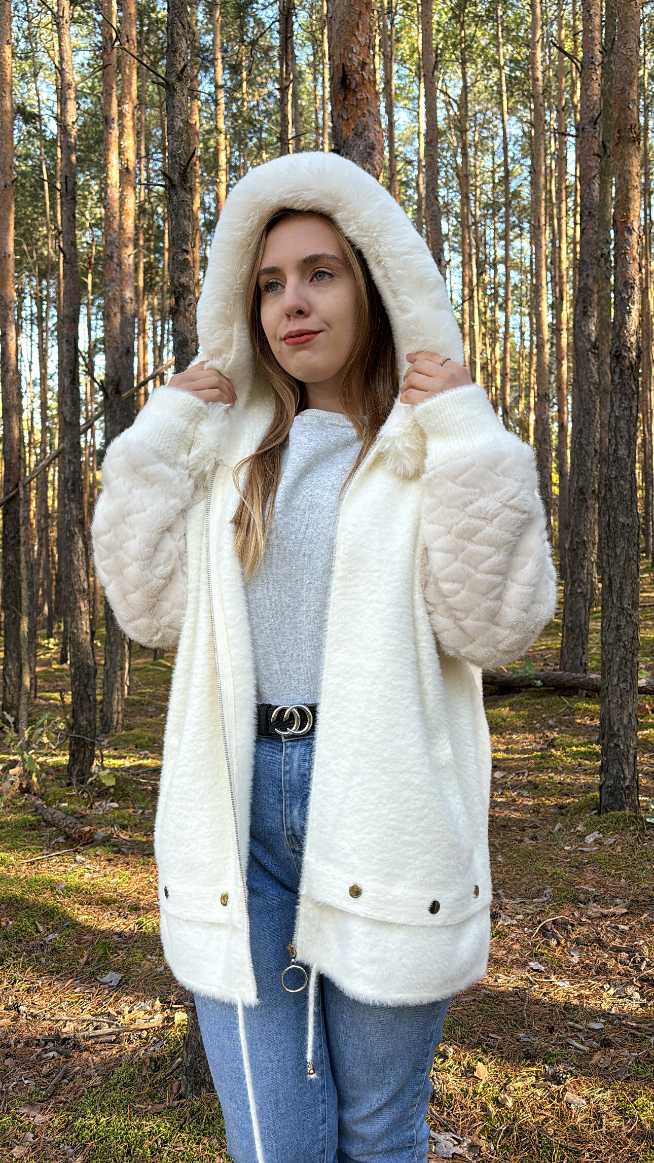 ALPAKA z miechem w kolorze sweterka, rękawy z eko futerka.