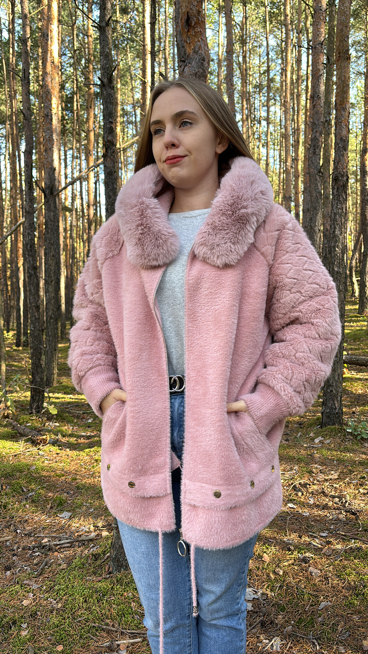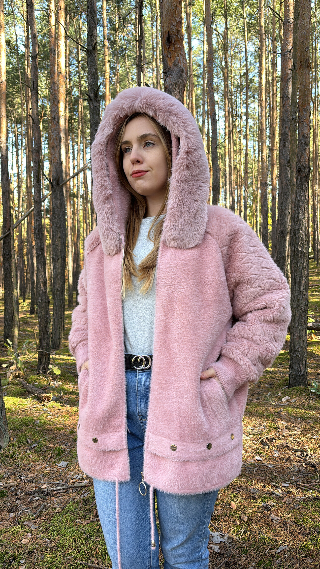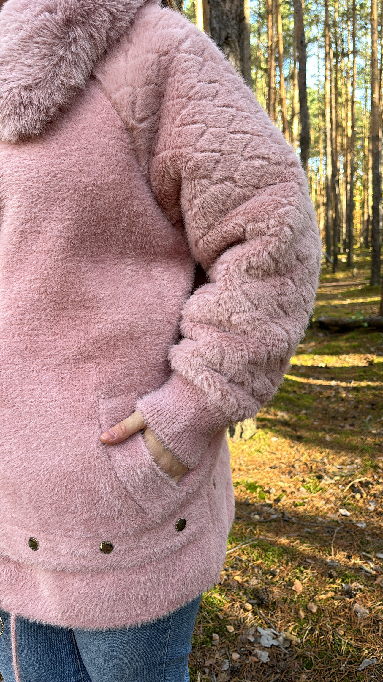 ALPAKA z miechem w kolorze sweterka, rękawy z eko futerka.