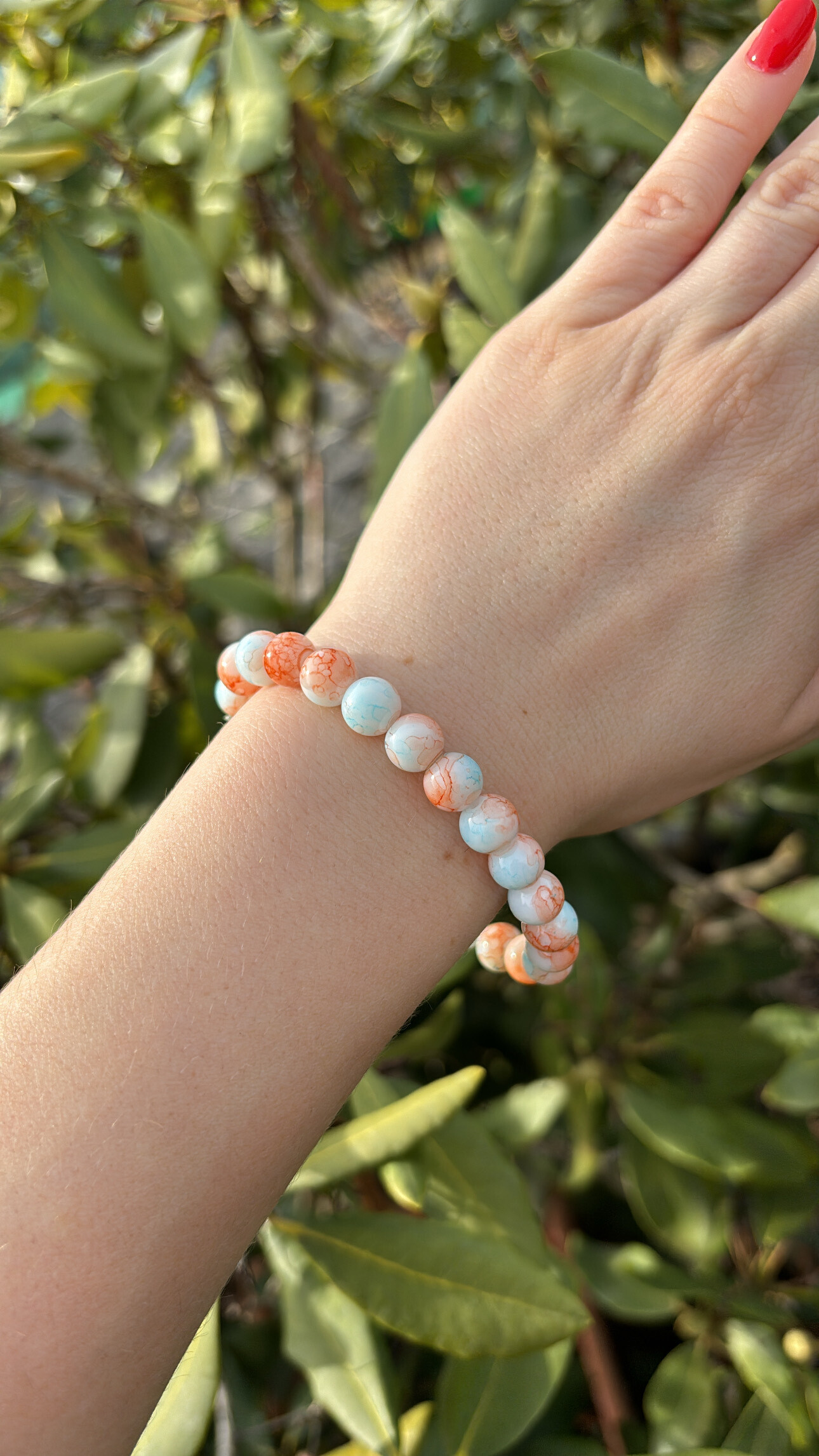 Bransoletka w stylu boho wykonana z biało-pomarańczowych szklanych koralików