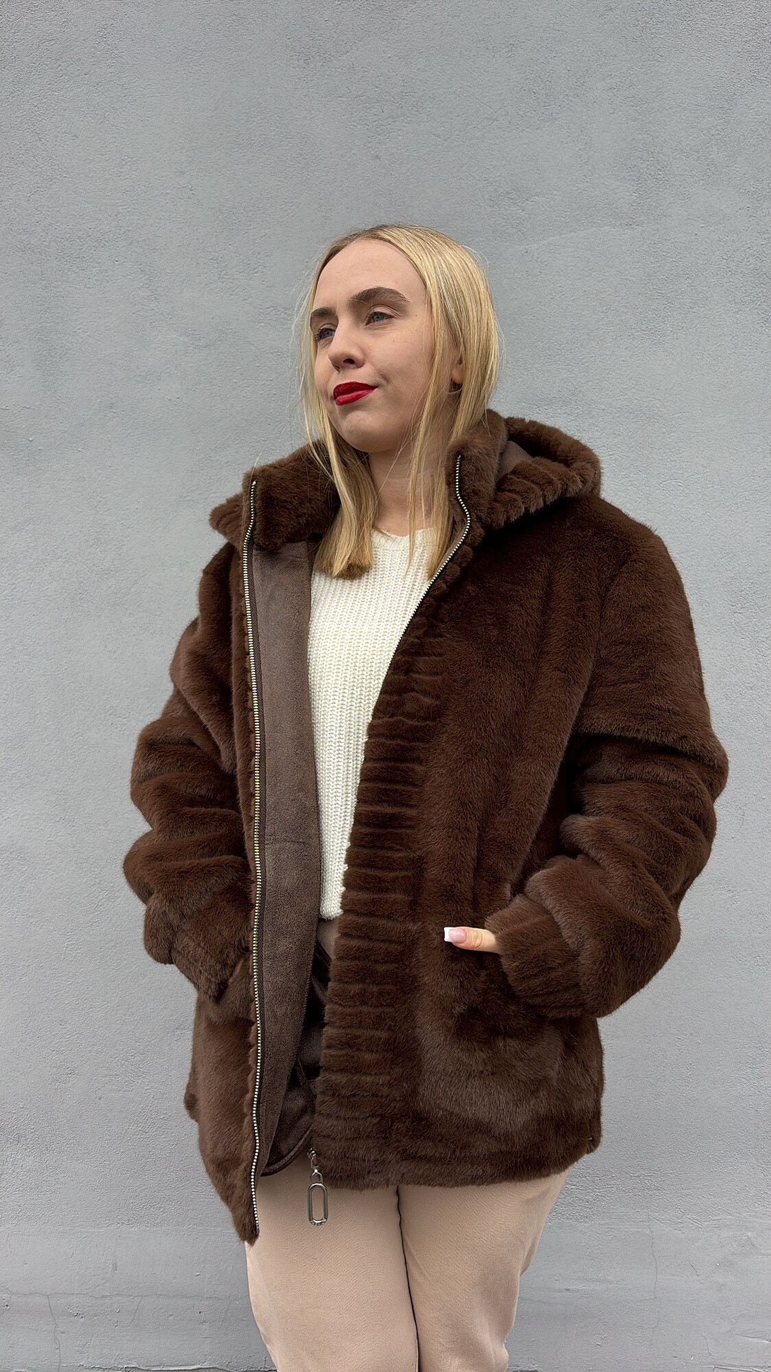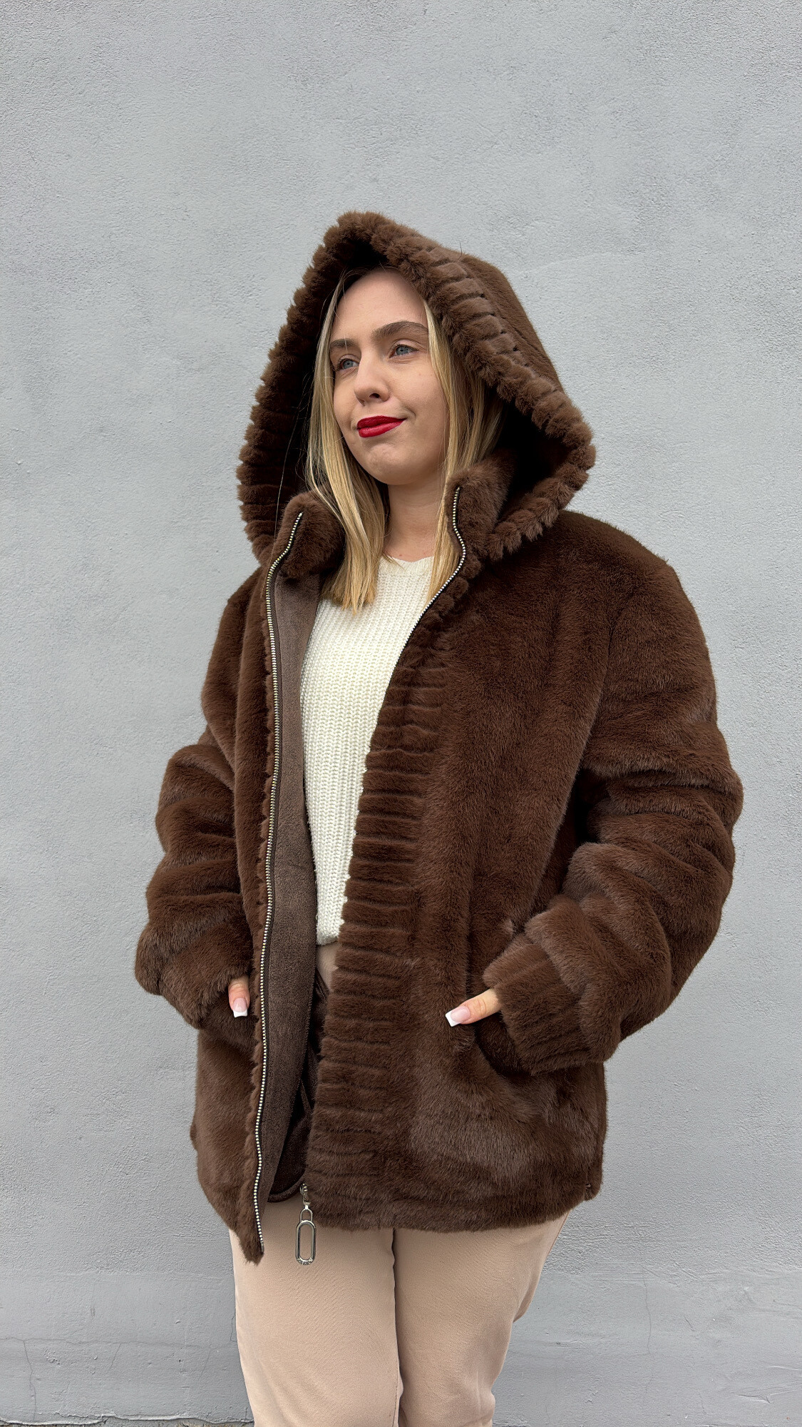 - futro posiada głęboki kaptur