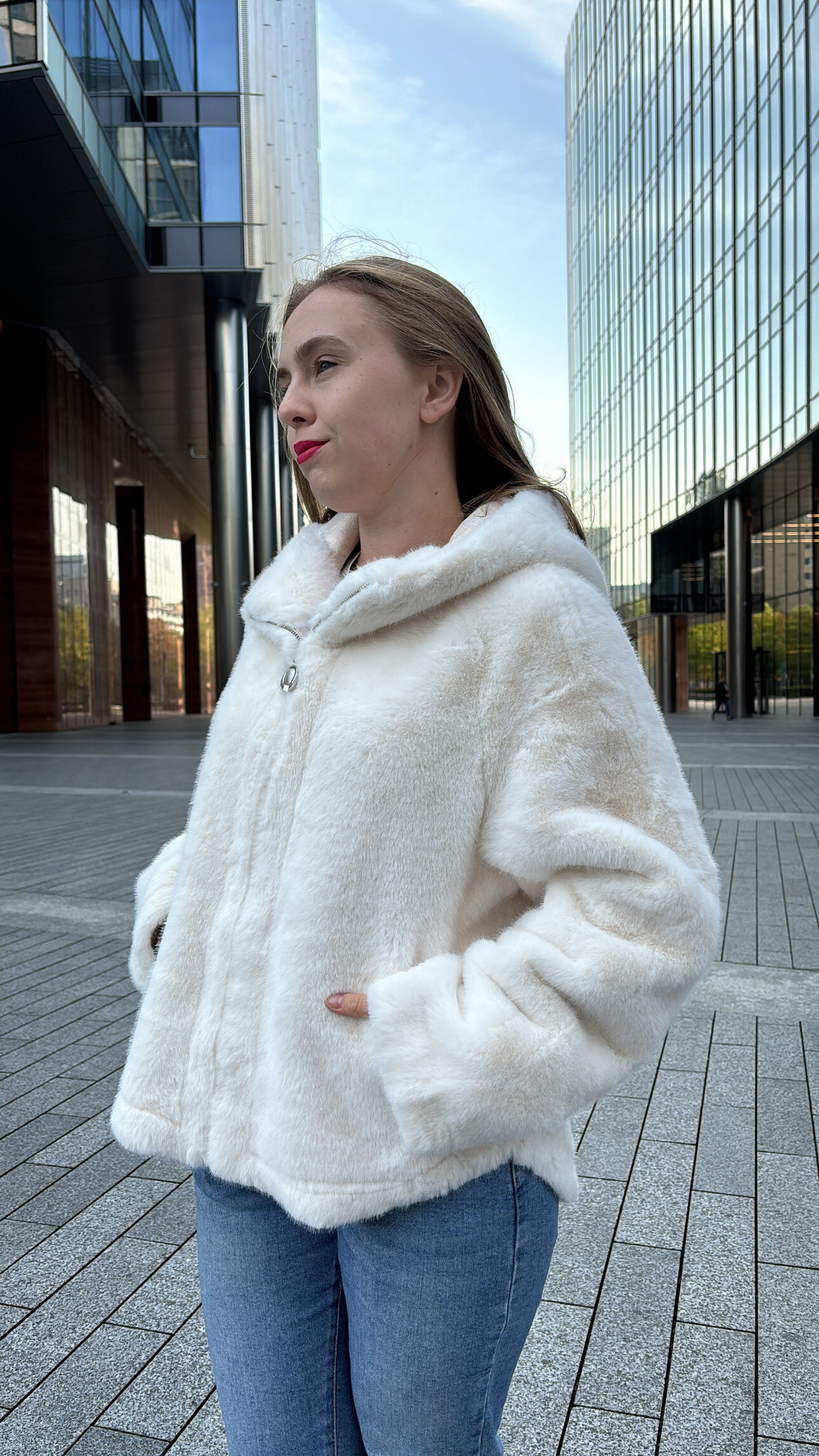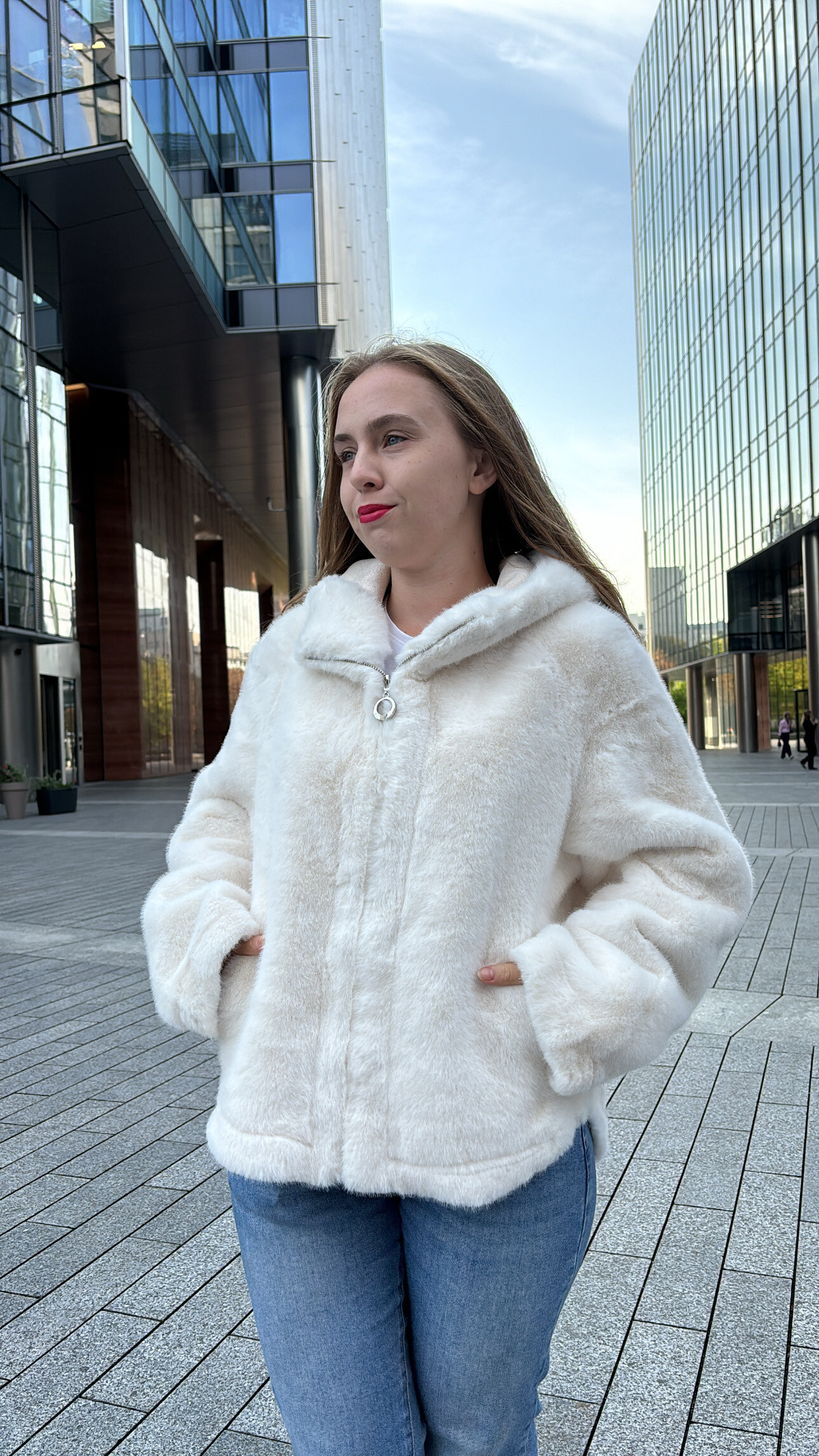 Piękna kurtka z eko futerka, delikatna przyjemna w dotyku idealna na chłodniejsze jesienno-zimowe dni, kolekcja 2024r.