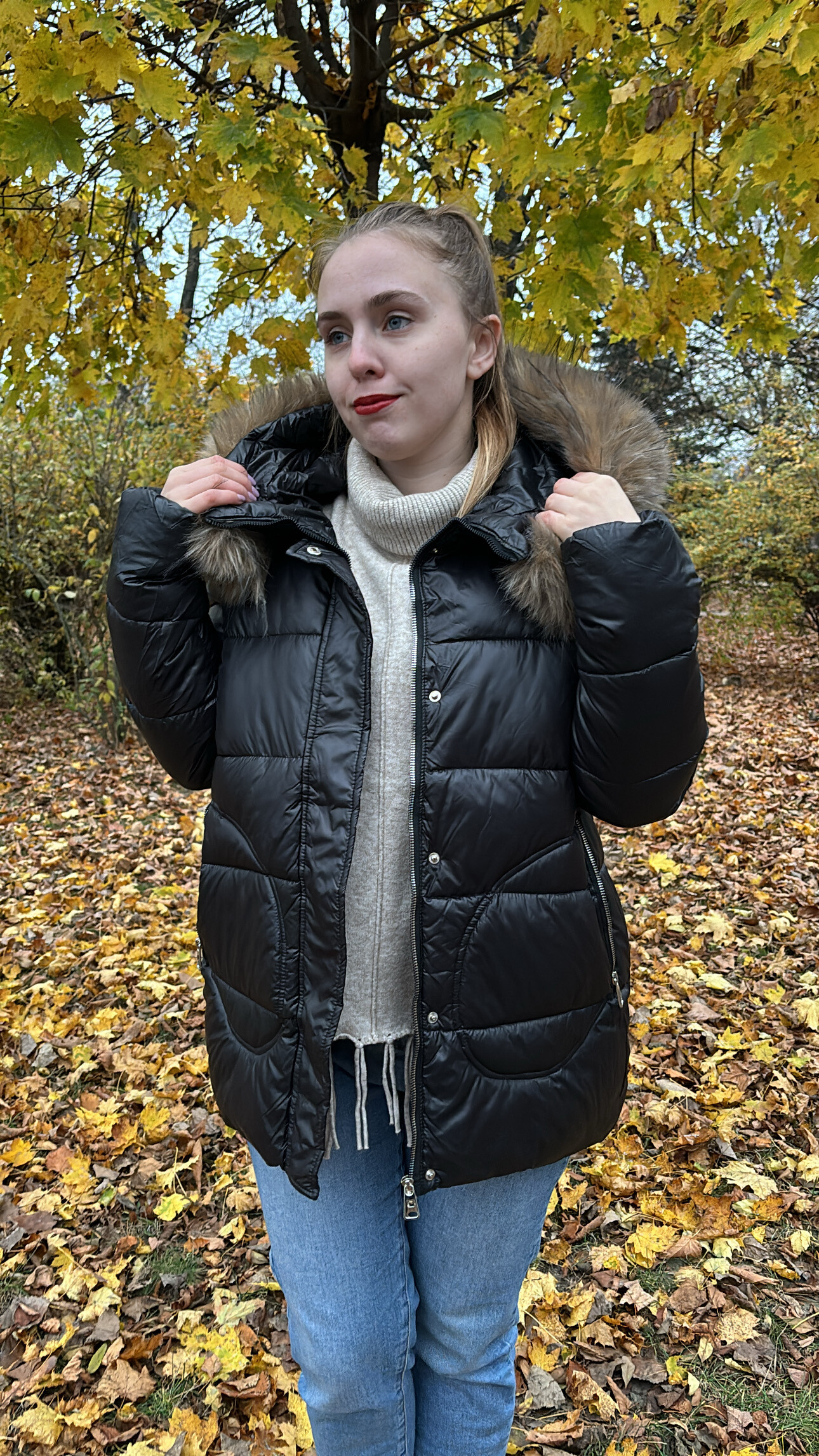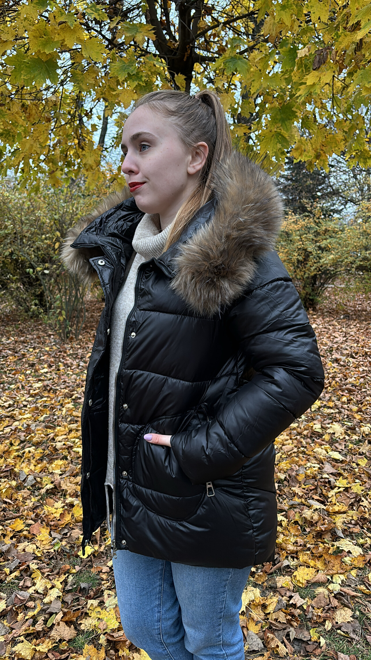 Kurtka Alaska to połączenie klasyki z elegancją. Pikowany materiał z odpinanym futerkiem imitującym jenota.
