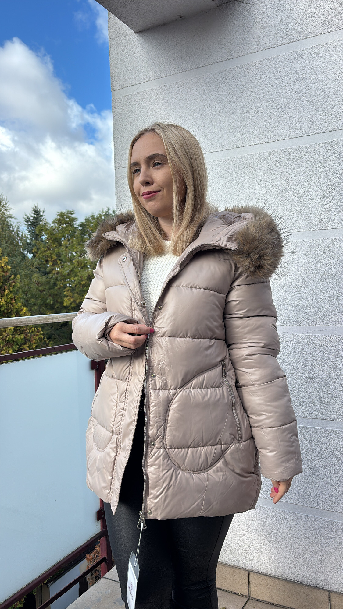 Kurtka Alaska to połączenie klasyki z elegancją. Pikowany materiał z odpinanym futerkiem imitującym jenota.