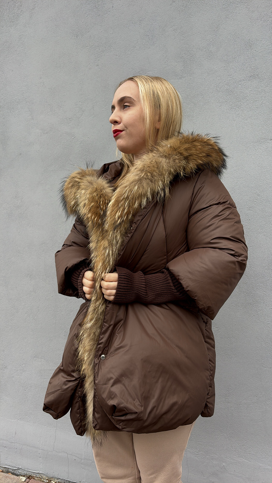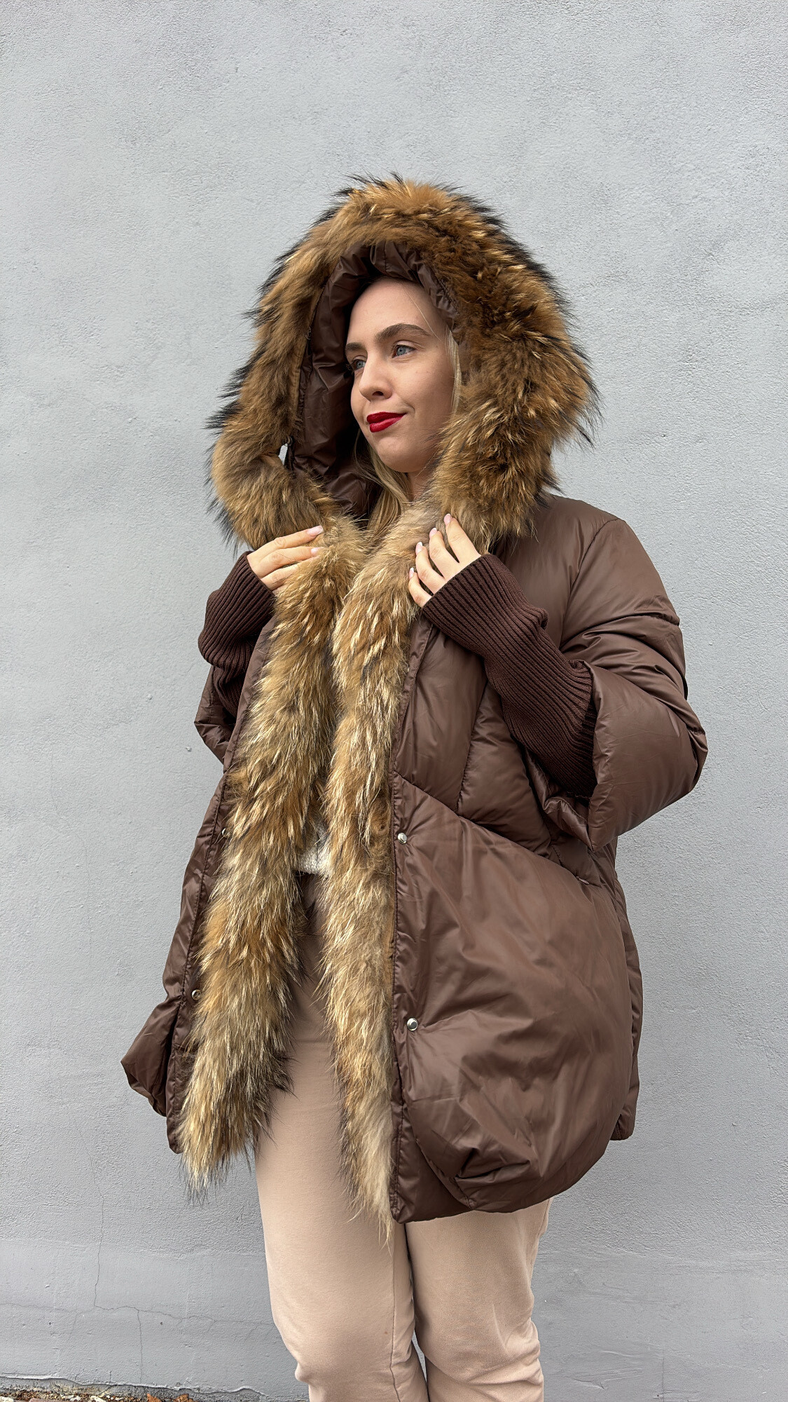 Materiały: bawełna, naturalne futro z jenota, poliester ,