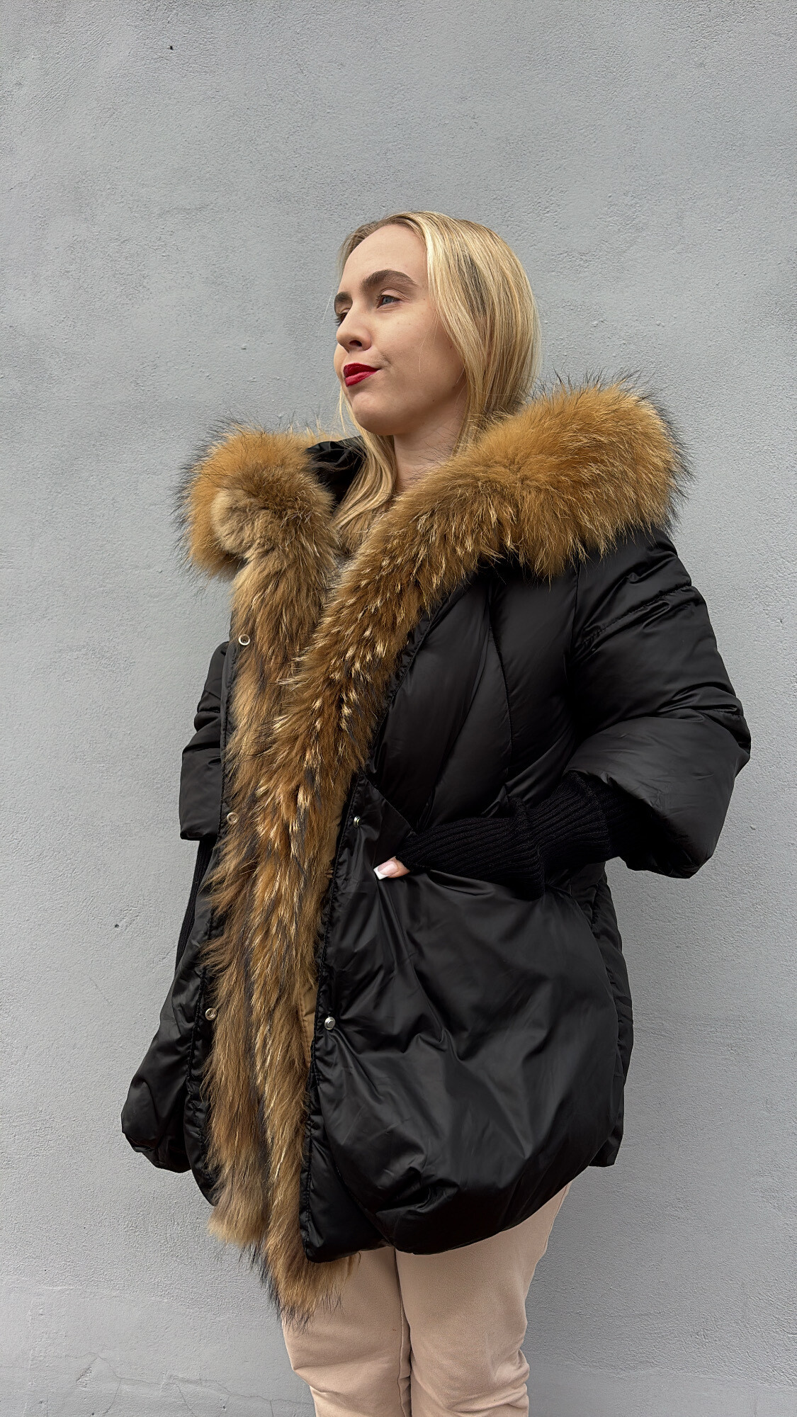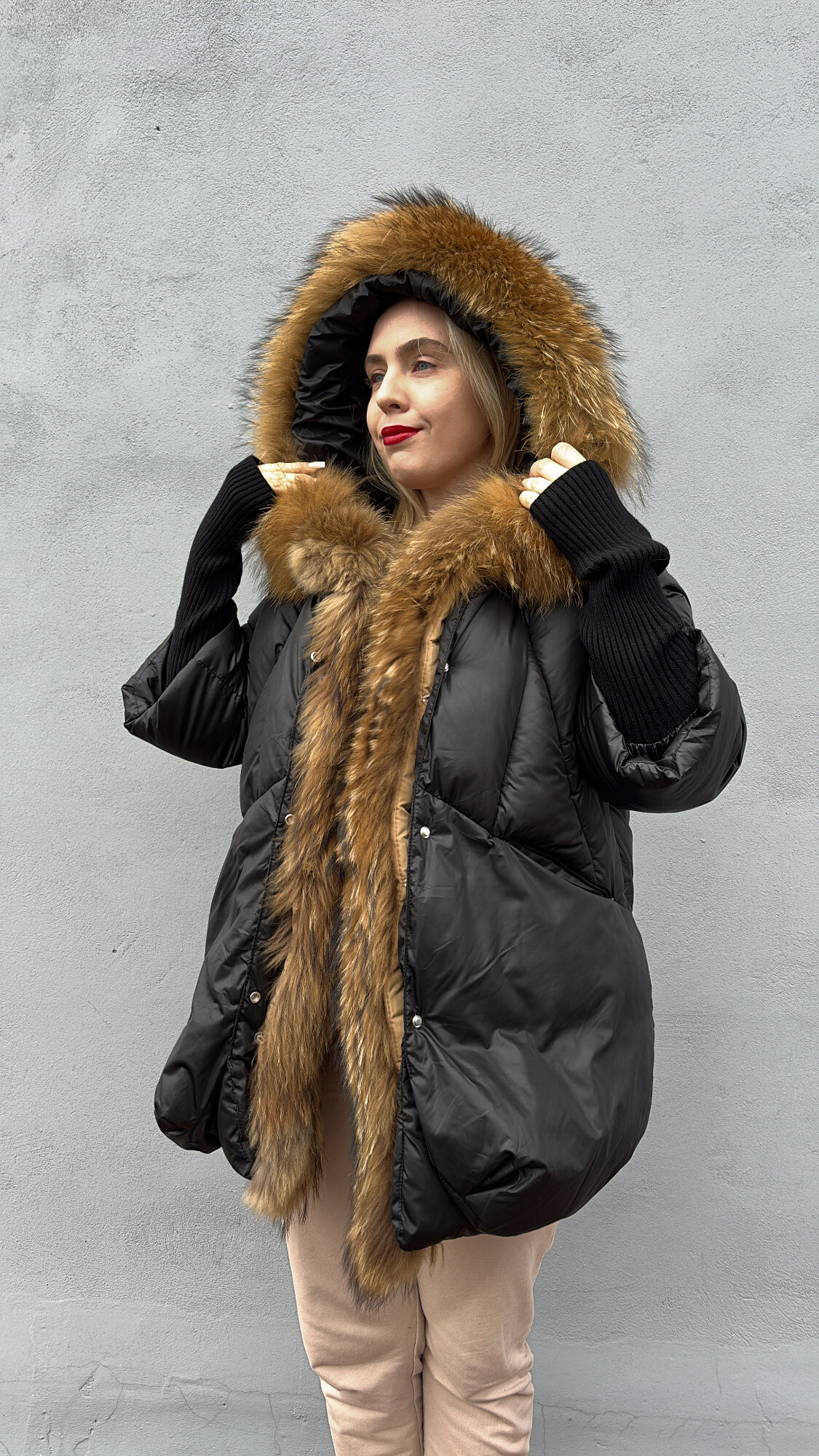 Materiały: bawełna, naturalne futro z jenota futro, poliester ,