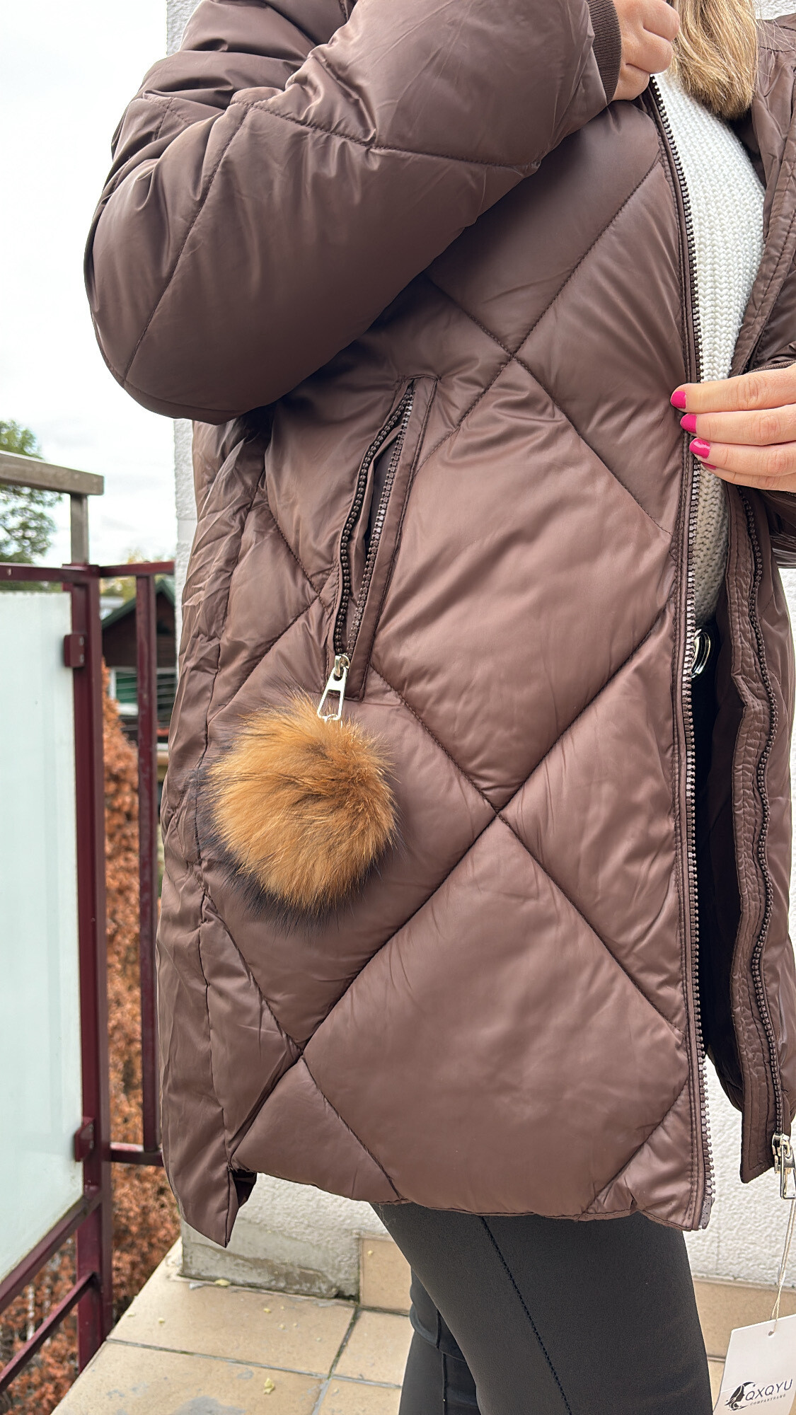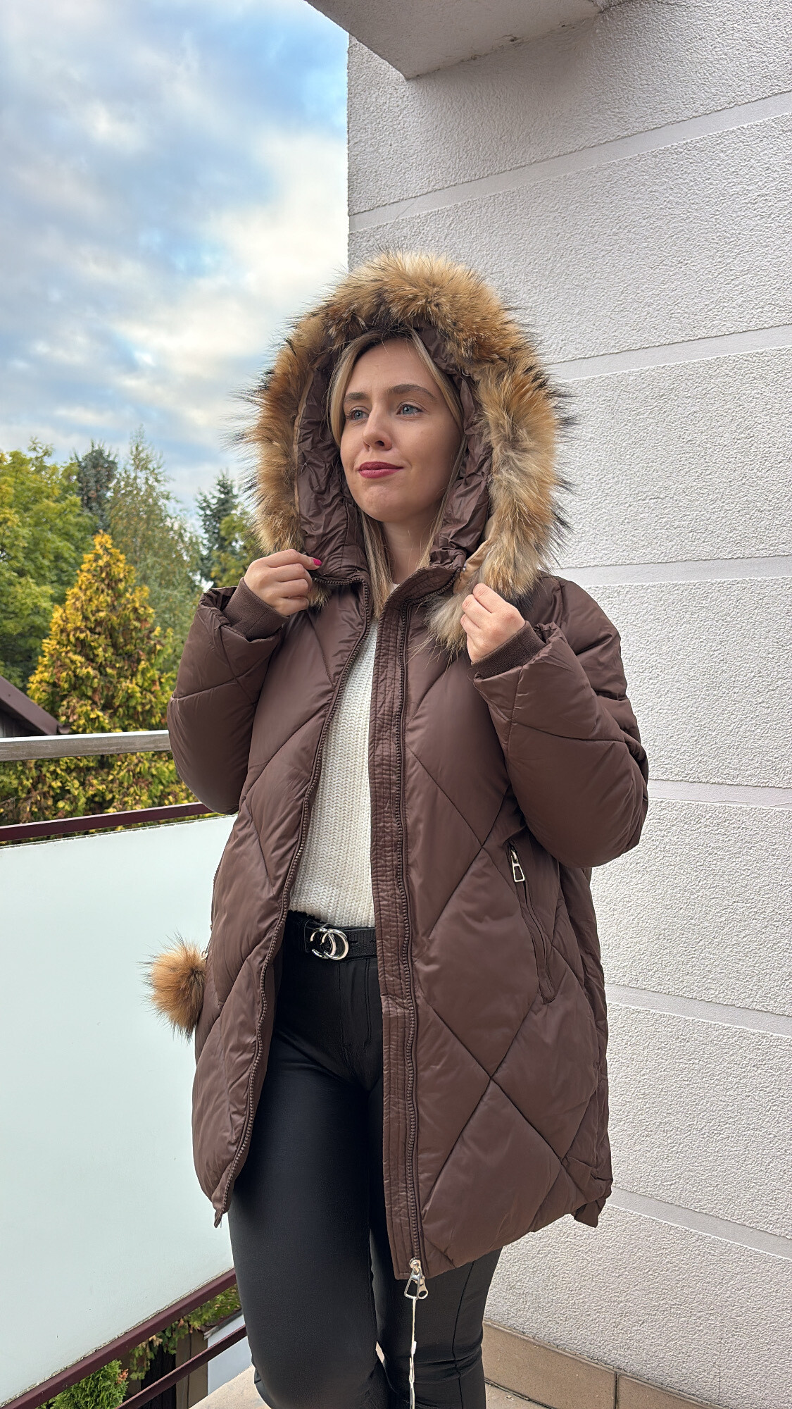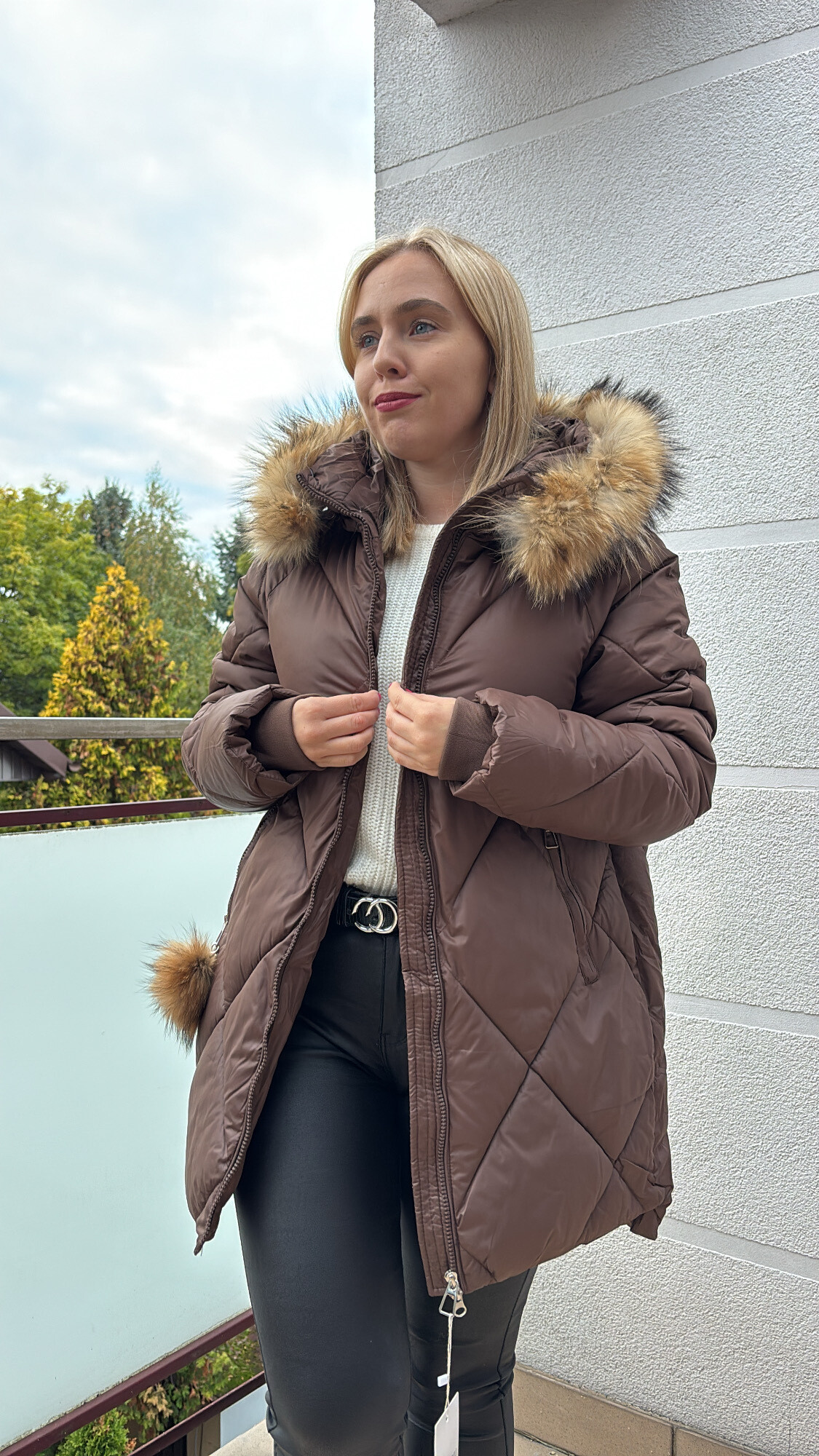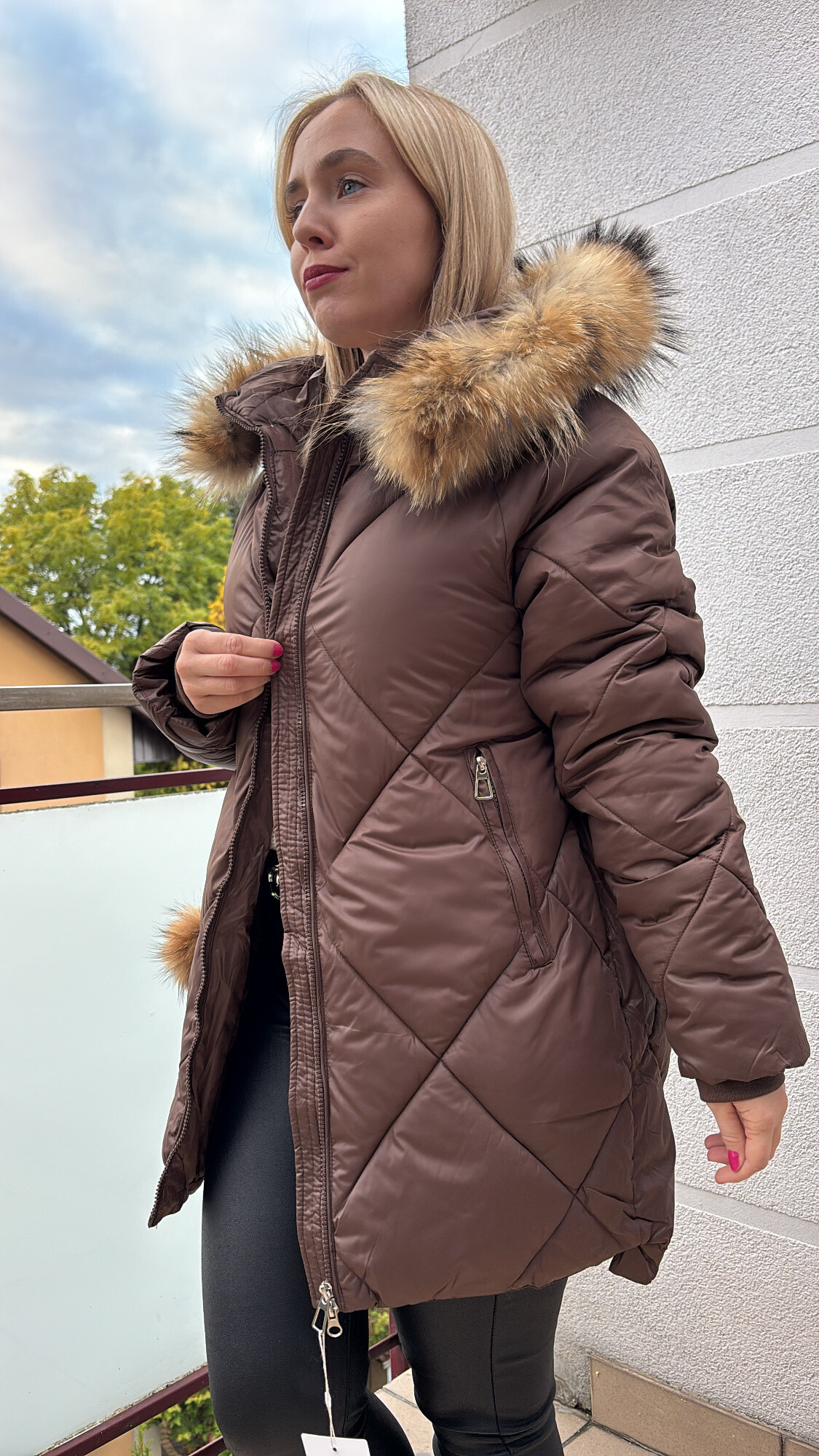 połączenie klasy i funkcjonalności. Wykonana z wysokiej jakości materiałów, zachwyca pikowaniem w romby. Model został wykończony efektownym futerkiem z jenota. Kurtka zapinana jest na solidny suwak, a pojemne kieszenie na zamek gwarantują bezpieczeństwo przechowywania drobiazgów.