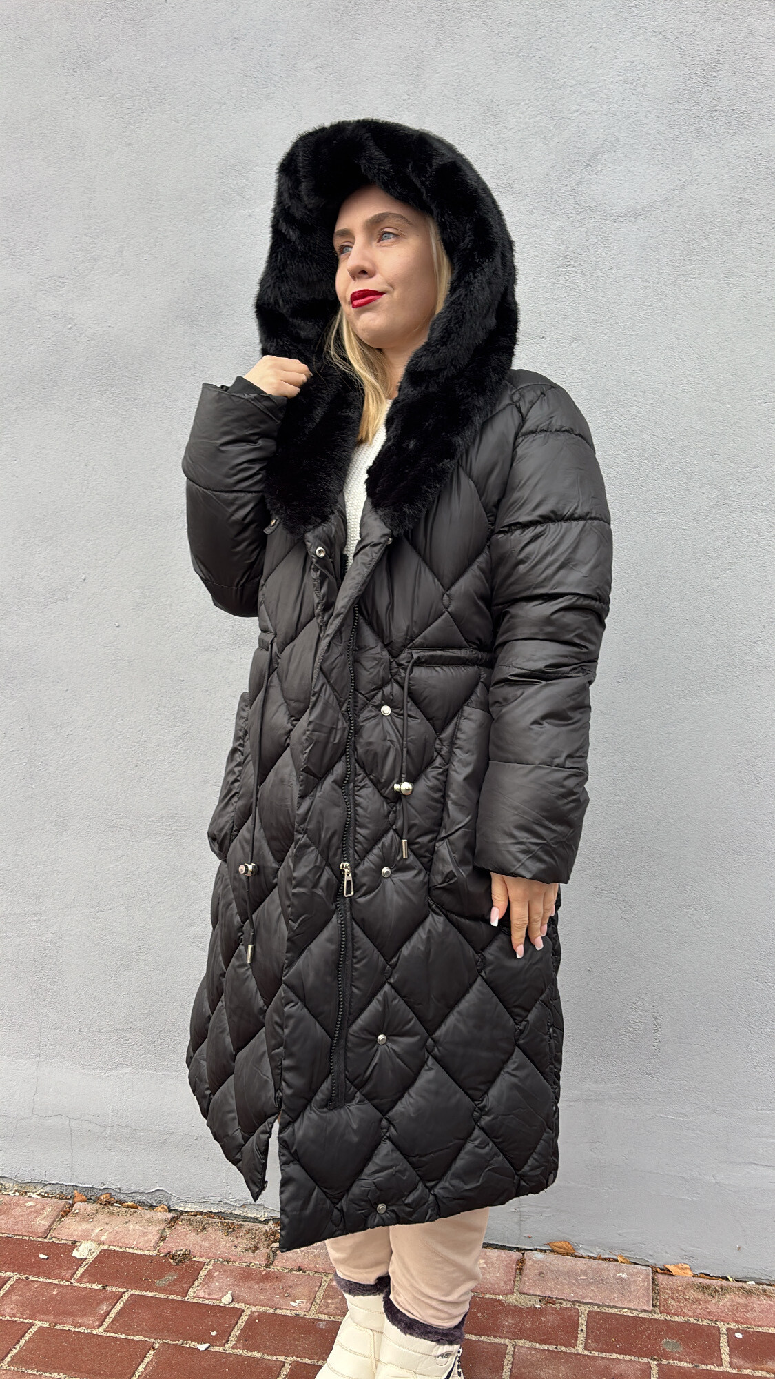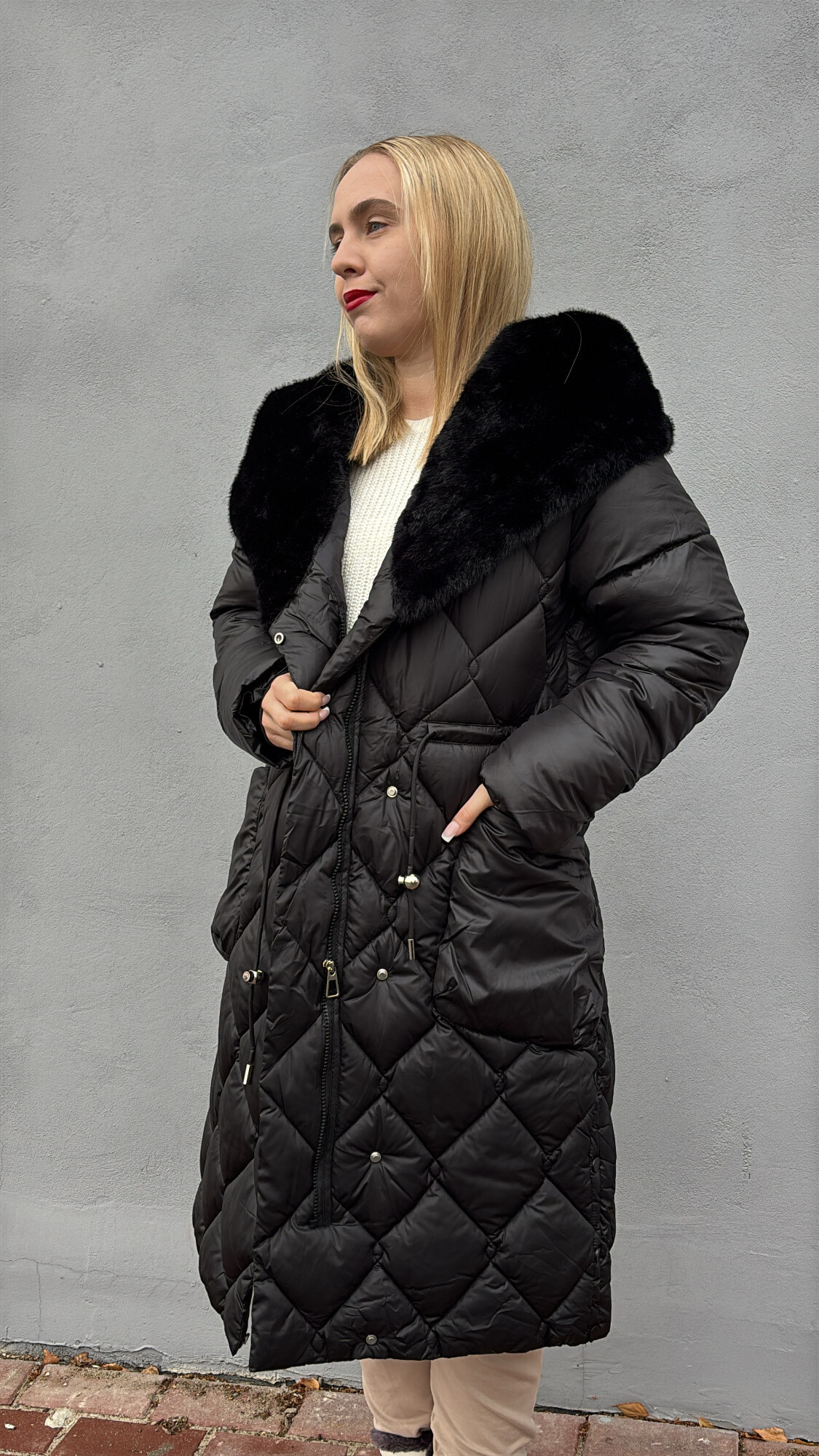 Płaszcz Florencja to nasz najnowszy model z kolekcji zima 26r. ocieplany, z futrem w kołnierzu.
